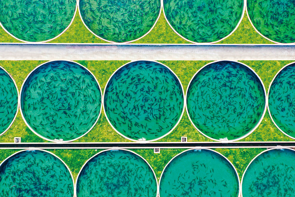 在四川省天全水產現代農業(yè)園內,上百個圓形流水魚池依河而建。圖片由天全縣委宣傳部提供。