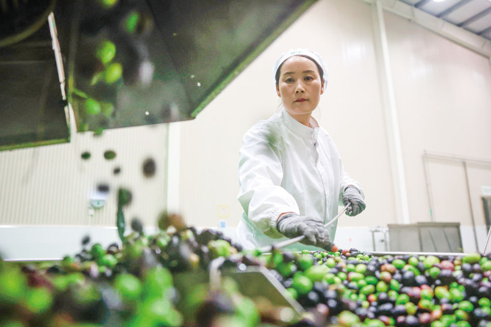 在中國西北的甘肅隴南,上百萬畝油橄欖已采摘進入榨油生產線,當地人春節(jié)拜年帶上一盒新榨橄欖油,健康又體面;
