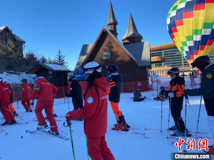 正值2024至2025雪季期間,當(dāng)日下午,一行人來到富龍滑雪場體驗(yàn)滑雪??紤]多數(shù)人是“首滑”,當(dāng)?shù)匕才帕藢I(yè)教練教授雙板滑雪入門知識。