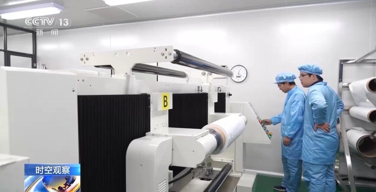 而在另一頭的這家固態(tài)電池配件制造企業(yè),一款固態(tài)無孔電解質隔膜正在有序生產中。從基膜變身電解質膜的質變,關鍵就在于灰色的高分子材料,負責人告訴記者,這款材料能夠提升隔膜的安全性、可靠性并延長使用壽命,很大程度保障了固態(tài)電池的制作所需。