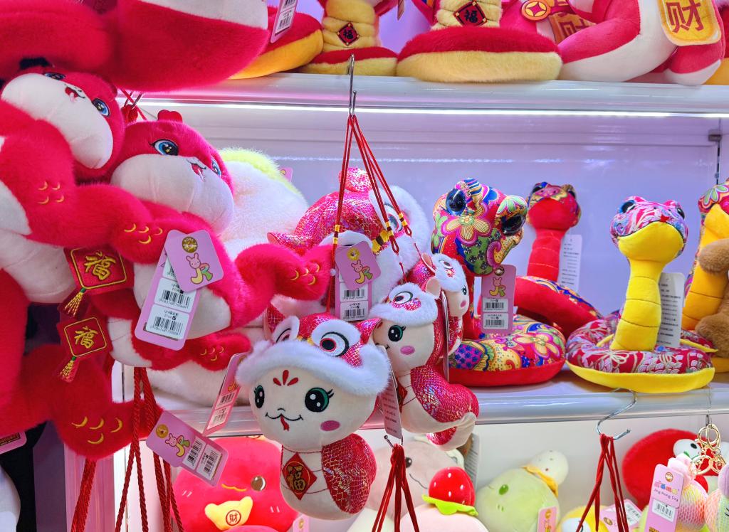 農(nóng)歷乙巳蛇年將至,結(jié)合生肖主題,陸慶榮與團(tuán)隊(duì)早在去年七、八月就敲定了三十多個(gè)品種的款式設(shè)計(jì),而十一月、十二月便是出貨銷售的高峰期,每天能賣出約兩萬(wàn)只毛絨玩具。其中,“福寶蛇”和布藝蛇玩具是“人氣王”。