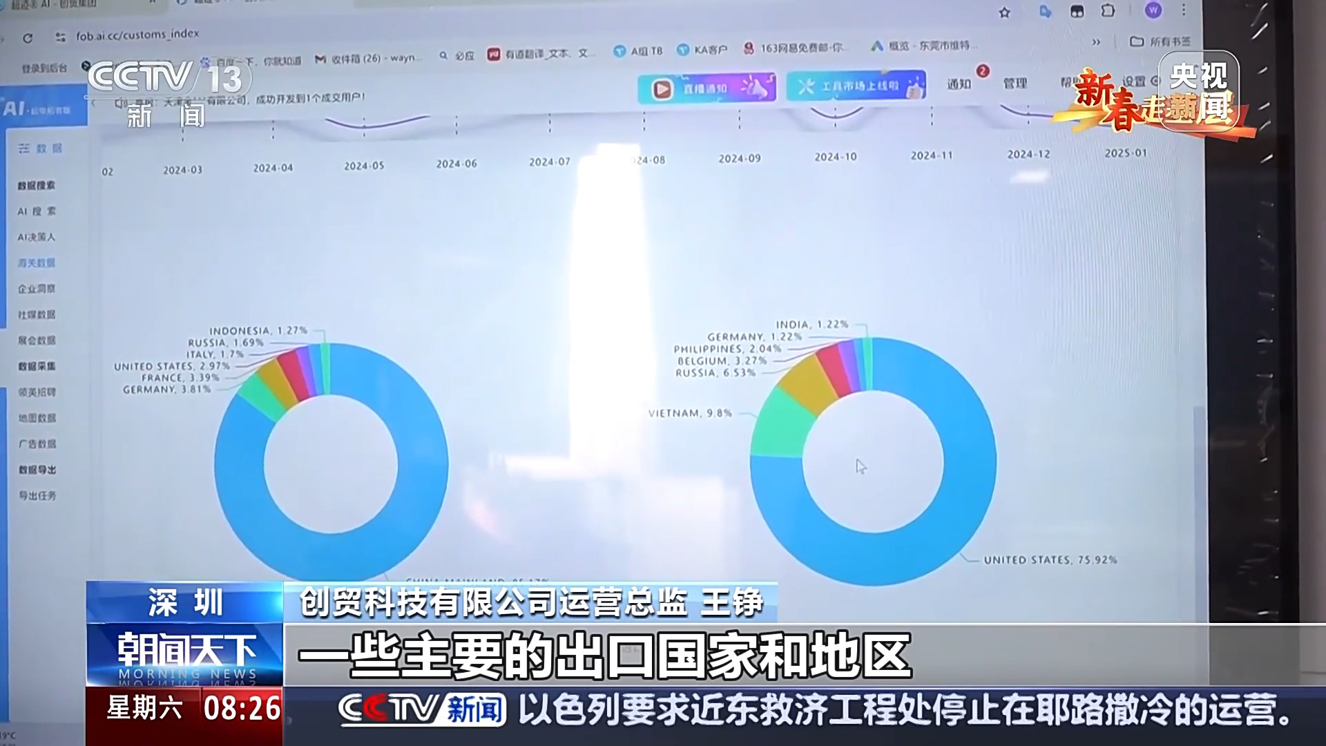 創(chuàng)貿科技有限公司運營總監(jiān) 王錚:我們統(tǒng)計了一下,目前全球關于這一款產品的一些主要的出口國家和地區(qū),以及進口國家和地區(qū)也是展示出來了。