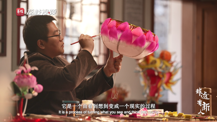 秦淮燈彩是多種非遺技藝的集合體,以最經(jīng)典的荷花燈為例,一共有62道工序。大體可分為以下: