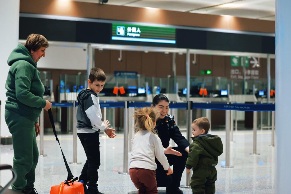 俄羅斯瑪莎一家,申請了臨時入境許可,在北京中轉(zhuǎn)??吹揭恍杏腥齻€孩子,孫麗靜主動上前服務(wù),為孩子們倒上溫水解渴,陪他們玩耍。
