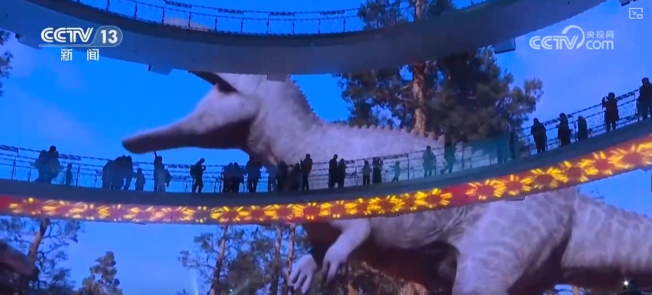 春節(jié)期間循環(huán)播放的恐龍科學(xué)藝術(shù)展、春節(jié)主題展、春節(jié)檔電影精編等“四屏聯(lián)動(dòng)”原創(chuàng)視頻,將光影資源與科教文化有機(jī)融合。特別是恐龍科學(xué)藝術(shù)展深受小朋友喜愛。展覽現(xiàn)場,巨幅卷軸屏以直觀的方式展現(xiàn)恐龍的樣貌與龐大體型,邀請觀眾與這些史前巨獸“比高”。環(huán)屏則將播放引人入勝的動(dòng)畫視頻,生動(dòng)再現(xiàn)侏羅紀(jì)中期恐龍的生活場景,讓觀眾仿佛可以跟隨恐龍的步伐,重返遠(yuǎn)古世界。