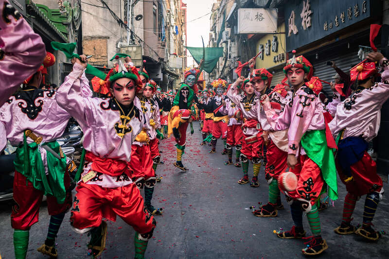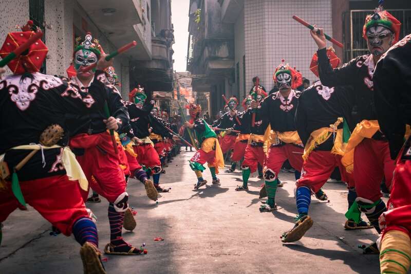 即便一直以松散的形式存在,甲子英歌憑著小鎮(zhèn)人的熱情和情懷,在唱念做打、武術(shù)臉譜等多個(gè)行當(dāng)傳了一代又一代,師傅傳徒弟、父傳子。