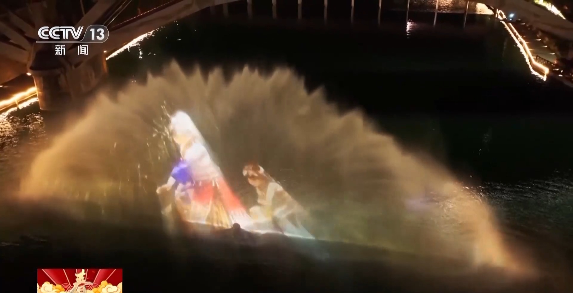 當(dāng)?shù)剡€精心打造水幕電影,形成色彩斑斕如夢(mèng)似幻的畫面,給觀眾帶來科技感十足的視覺盛宴。據(jù)統(tǒng)計(jì),春節(jié)期間每天接待游客量25萬人次。