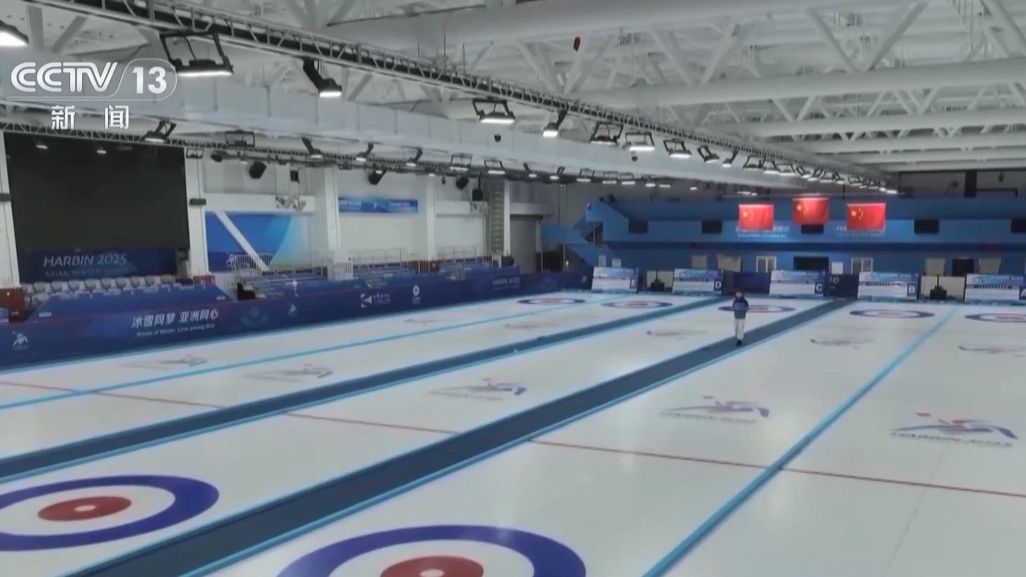 總臺央視記者 鄭怡哲:行走在冰壺比賽的冰面上,依然可以看到原來場館的主體結(jié)構(gòu),但是冰壺館的內(nèi)部空間則是進行了全面的優(yōu)化。
