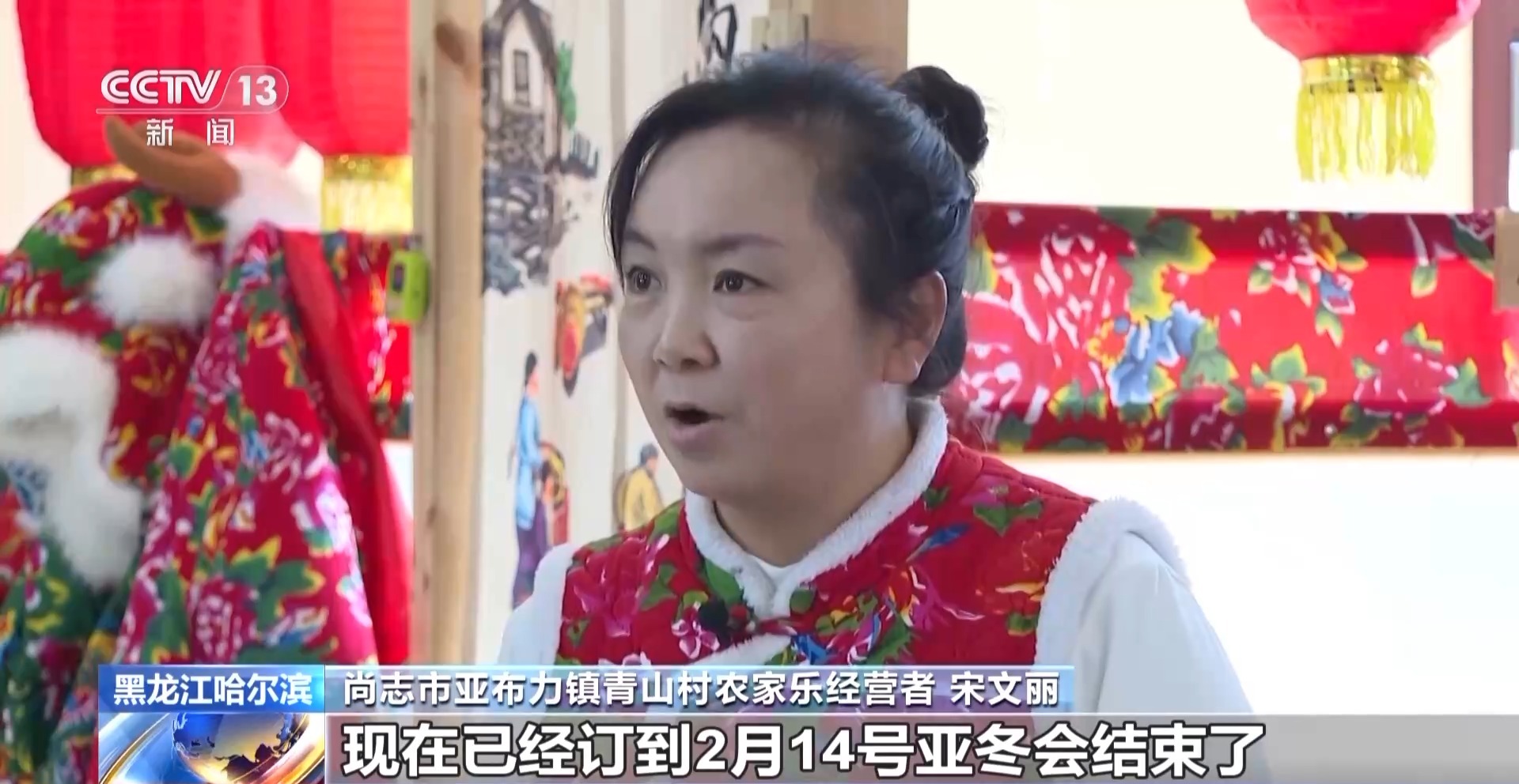 總臺(tái)記者 王海樵:現(xiàn)在一走進(jìn)村子就可以隨處看到這種掛著大紅燈籠的農(nóng)家樂(lè)和民宿,全村有300多戶人家,其中有120多戶都是從事和滑雪旅游產(chǎn)業(yè)相關(guān)的生意,如今的青山村也成為了名副其實(shí)的亞布力山下第一村?! ?img alt="" src="./W020250207709258676088.jpg" OLDSRC="W020250207709258676088.jpg" />