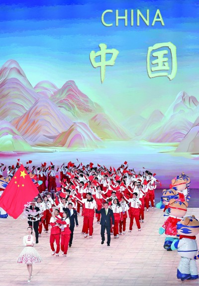 當(dāng)中國代表團入場時,體育健兒揮手致意,現(xiàn)場觀眾起立鼓掌。在本屆亞冬會上,中國代表團將參加全部項目的比賽,并朝著“取得我國亞冬會參賽史上最好成績”的目標(biāo)全力進發(fā)。