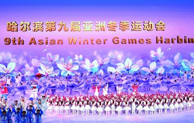 本屆亞冬會的主題歌《點亮亞洲》響起,歌曲寓意著點亮冰雪運動的澎湃浪潮之光,點亮繁榮發(fā)展的文明互鑒之光,點亮“亞洲命運共同體”的光明前景之光。