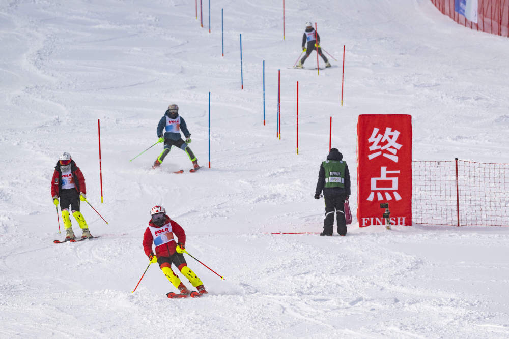 2024年12月22日,參賽選手在觀察男子回轉(zhuǎn)測試賽線路。當(dāng)日,2025年哈爾濱亞洲冬季運(yùn)動會高山滑雪項目測試賽在黑龍江省亞布力體育訓(xùn)練基地(亞布力滑雪場)舉行。