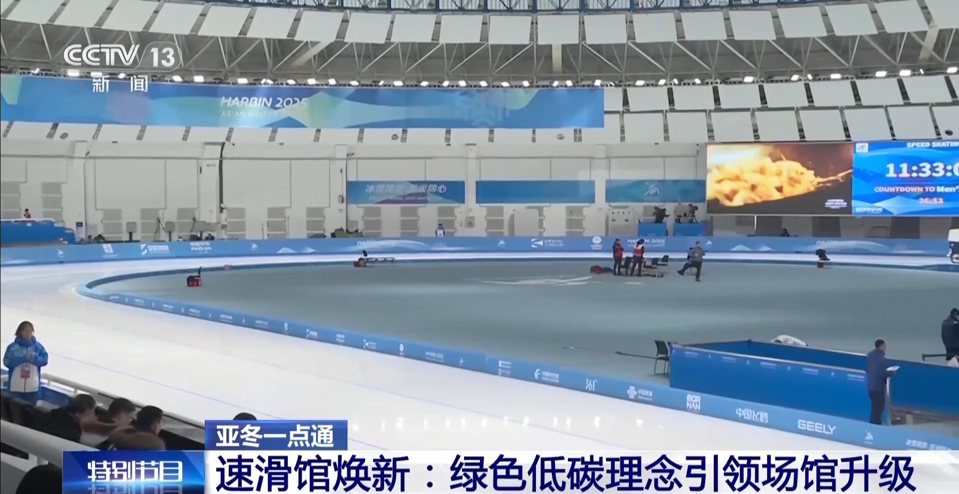 此外,運動員在激烈的比賽中,冰刀會破壞冰面。所以,在比賽間隙時就要進行澆冰,將滑道的平整度、溫度調(diào)整到最好狀態(tài)。本屆亞冬會,場館中的澆冰車更新為了先進的電子澆冰車,能把水均勻平整地澆在冰面上,隨后冰層下面的冷排設備會將低溫傳導到冰面上,讓水快速冰凍,從而起到修復冰場的作用。澆冰的效率和精細化程度更高,保障了各國運動員們能滑出好成績。