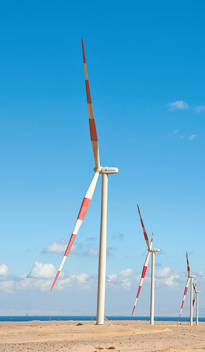 蘇伊士灣風(fēng)電項(xiàng)目位于埃及首都開羅以南約300公里的蘇伊士灣西岸小鎮(zhèn)拉斯·加里卜。項(xiàng)目共有77臺風(fēng)電機(jī)組,建成后預(yù)計(jì)每年可生產(chǎn)約27億千瓦時的清潔電力,實(shí)現(xiàn)二氧化碳減排約100萬噸。穆罕默德說:“在這片曠野上工作,把蘇伊士灣的風(fēng)轉(zhuǎn)化成電能,‘點(diǎn)亮’萬家燈火,我感到十分驕傲?!?/p>