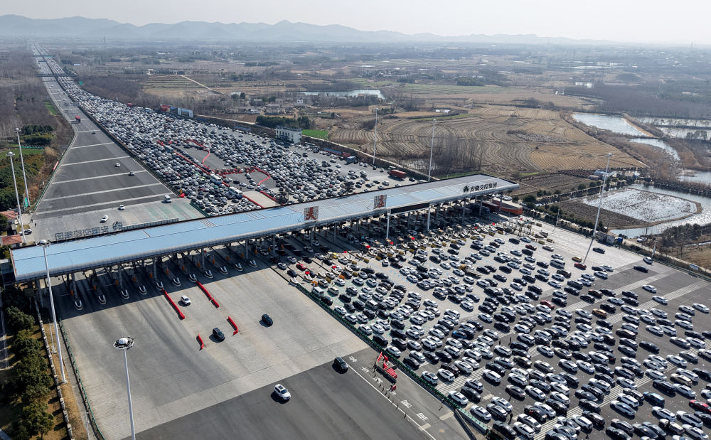 2025年2月4日,節(jié)后返程車輛通過合寧高速公路吳莊收費(fèi)站(無人機(jī)照片)。新華社發(fā)(沈果 攝)