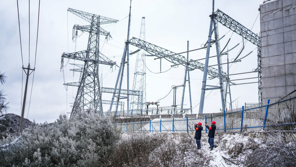 2025年1月26日,南方電網(wǎng)貴州六盤水鐘山供電局工作人員對轄區(qū)內(nèi)線路進(jìn)行覆冰觀測。新華社記者 陶亮 攝