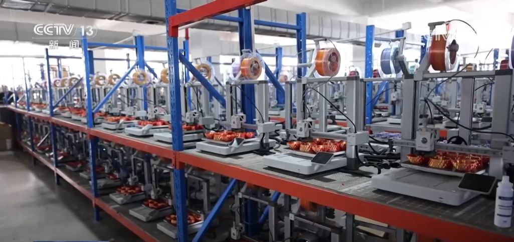 工廠負(fù)責(zé)人告訴記者,他的產(chǎn)品幾乎一直在海外電商平臺(tái)排名第一,秘訣之一就是打印的原材料。為了研發(fā)這個(gè)三色的材料,團(tuán)隊(duì)花了近四個(gè)月的時(shí)間。但也讓產(chǎn)品獲得了獨(dú)特優(yōu)勢(shì)。在打印車間的樓上就是占地面積5200平米的耗材車間,近50臺(tái)機(jī)器同時(shí)開動(dòng),全力生產(chǎn)。
