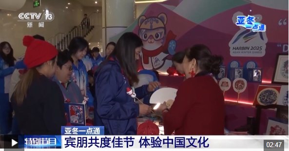 總臺央視記者 王晨:我現(xiàn)在是在位于哈爾濱亞冬會運動員村的一樓展廳,這里正在舉行“冰雪同夢·亞洲同心”非物質文化遺產(chǎn)展示活動。今天是開幕式后的第五個比賽日,展示活動持續(xù)進行中,有金漆技藝、方正剪紙、木雕重彩、皮影戲等非遺代表性項目展臺。