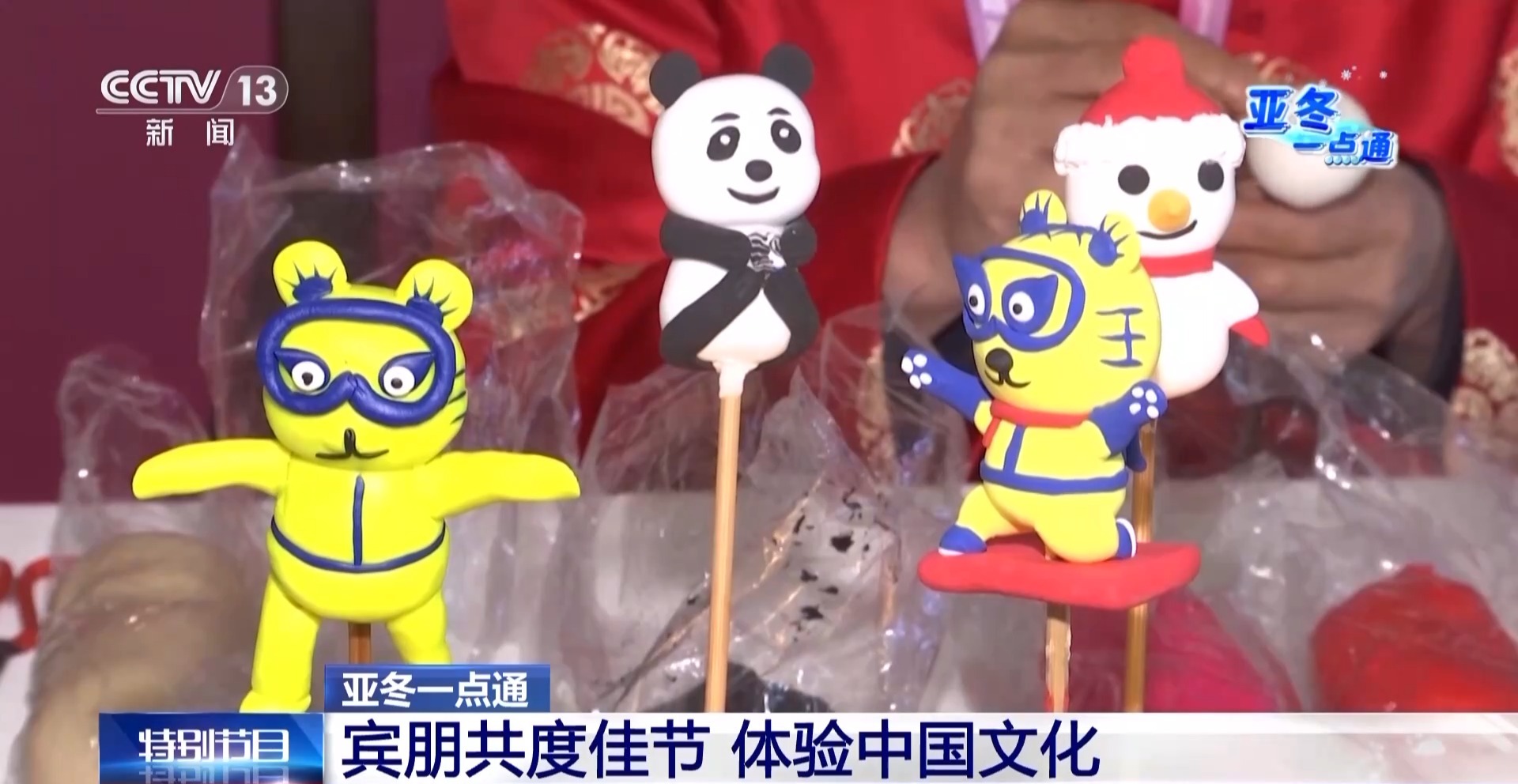 我旁邊就是面塑技藝的展臺,面塑在漢代就有文字記載,唐宋與曲藝結合,明清成為謀生的手段。制作材料以面粉、糯米粉為主,搭配蜂蜜等,可用食用色素調(diào)色。這也是我們國家的非物質文化遺產(chǎn),運動員可以到這里一起來感受和體驗非遺項目,現(xiàn)在工作人員正在做的吉祥物一會兒會送給運動員。