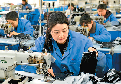 近日,在山東省濟寧市嘉祥縣的一家企業(yè)車間內(nèi),工作人員在縫制滑雪手套。作為中國重要的滑雪手套生產(chǎn)基地之一,嘉祥縣手套產(chǎn)品遠(yuǎn)銷60多個國家和地區(qū)。新華社記者 郭緒雷 攝
