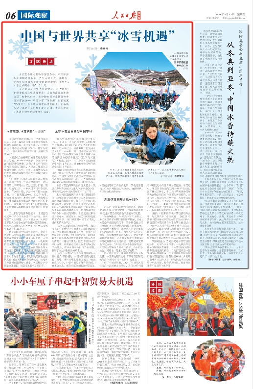從人潮涌動的室內(nèi)外滑雪場,到“圈粉”全球游客的冰雪旅游景點;從滿載冰雪裝備駛出國門的中歐班列,到紛紛加碼對華投資的外國冰雪企業(yè)……中國冰雪“冷資源”正在迸發(fā)“熱效應(yīng)”,為全球冰雪市場帶來暖意。正如新加坡《海峽時報》等外媒評論稱,中國冰雪經(jīng)濟發(fā)展將為世界提供更多機遇。