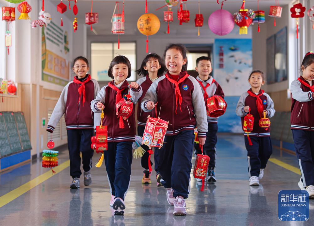 2月14日,山東省棗莊市市中區(qū)東湖小學(xué)學(xué)生們?cè)趨⒓影魏颖荣悺P氯A社發(fā)(孫中喆攝)