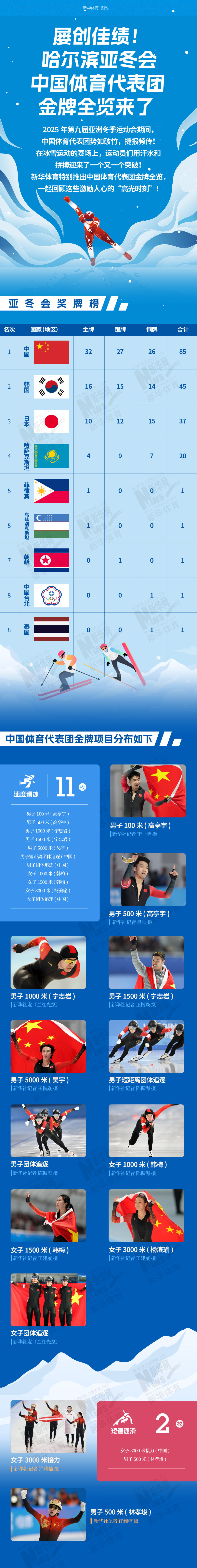長(zhǎng)圖|屢創(chuàng)佳績(jī)!哈爾濱亞冬會(huì)中國(guó)體育代表團(tuán)金牌全覽來(lái)了!