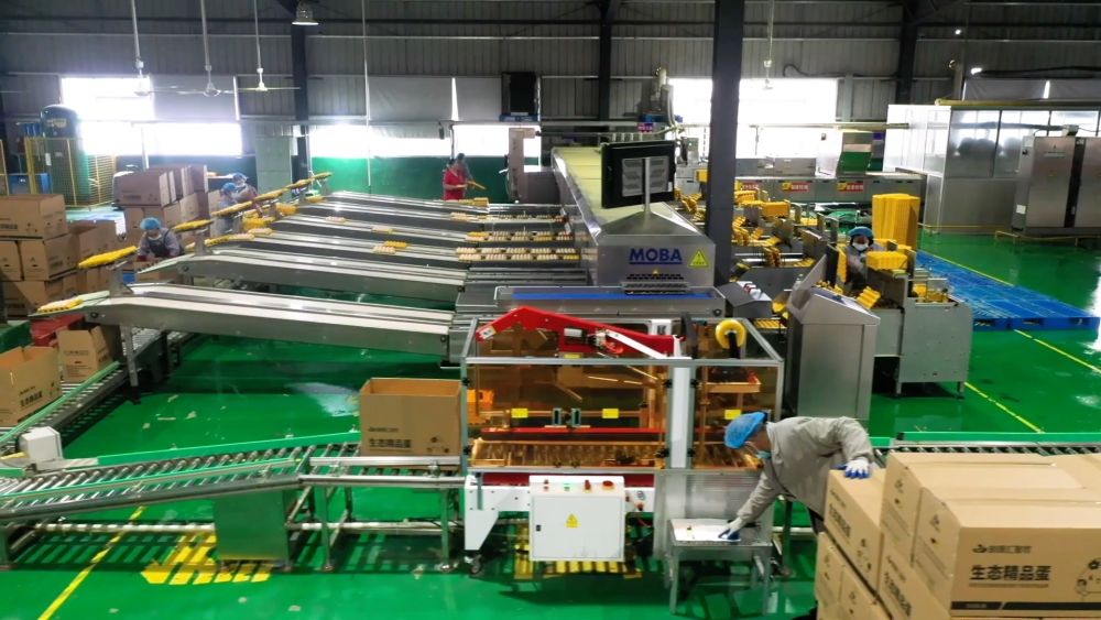 在湖北建始的一處養(yǎng)殖基地內(nèi),一枚枚當天產(chǎn)的新鮮雞蛋通過流水線不斷傳輸。經(jīng)過分揀、殺菌、打包、裝箱的雞蛋將被發(fā)往江蘇、浙江等地。