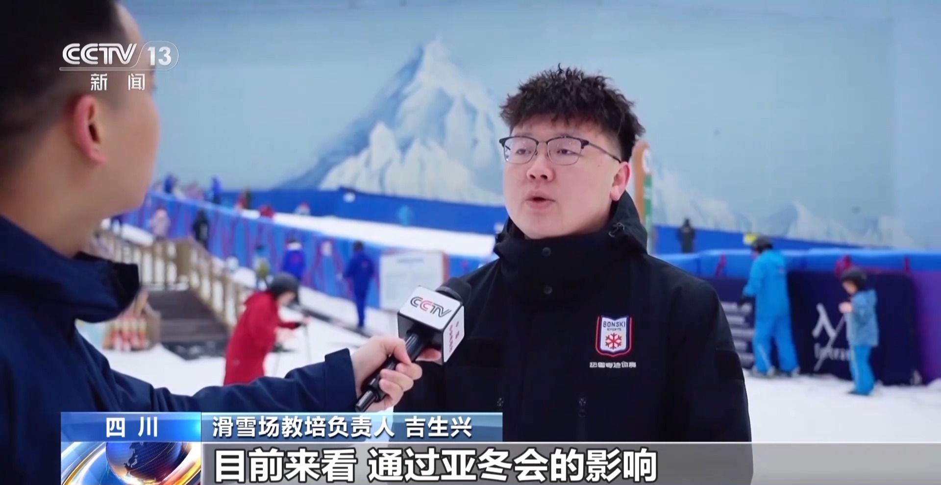 總臺(tái)記者 趙雄:我現(xiàn)在是在我國西南地區(qū)最大的室內(nèi)滑雪場,這里常年的溫度是零下6℃。在現(xiàn)場我們看到一共有六個(gè)不同的雪道,涵蓋了初、中、高各個(gè)不同的階段。不僅如此,在這里還有一個(gè)5000㎡的冰雪樂園。受亞冬會(huì)的影響,越來越多的人會(huì)選擇到這里來體驗(yàn)冰雪樂趣。