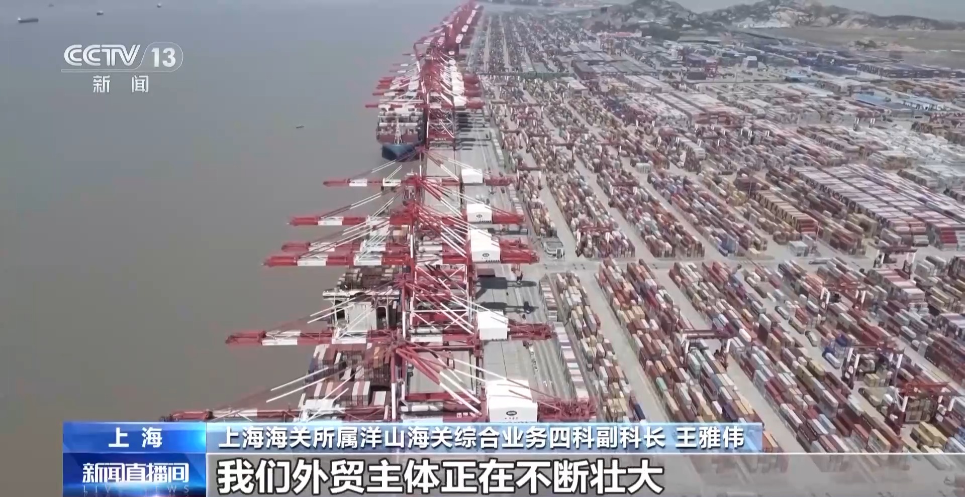 上海海關(guān)所屬洋山海關(guān)綜合業(yè)務(wù)四科副科長 王雅偉:今年1月份以來,我們共受理海關(guān)進出口報關(guān)單3.3萬份,較去年同期增長了近兩個百分點。這些數(shù)據(jù)讓我們明顯感覺到,外貿(mào)主體正在不斷壯大,外貿(mào)市場活力也在持續(xù)增強。