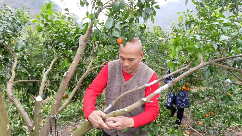 在大山深處,同樣火熱的生產在田陽區(qū)五村鎮(zhèn)洞琴村上演。農戶們正在加緊嫁接新芽,將沃柑換種為金秋砂糖橘。