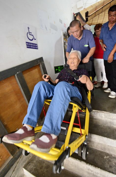 2024年7月11日,北京市朝陽區(qū)青年路社區(qū)一老舊小區(qū)居民在樓內(nèi)體驗“爬樓機”。新華社記者 李欣 攝
