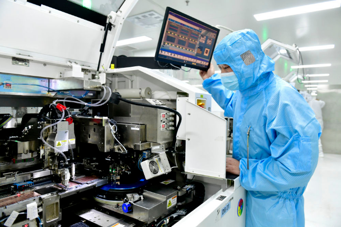 2025年2月13日,山東立國(guó)芯微電子有限公司工作人員在芯片生產(chǎn)線上工作。新華社記者 郭緒雷 攝