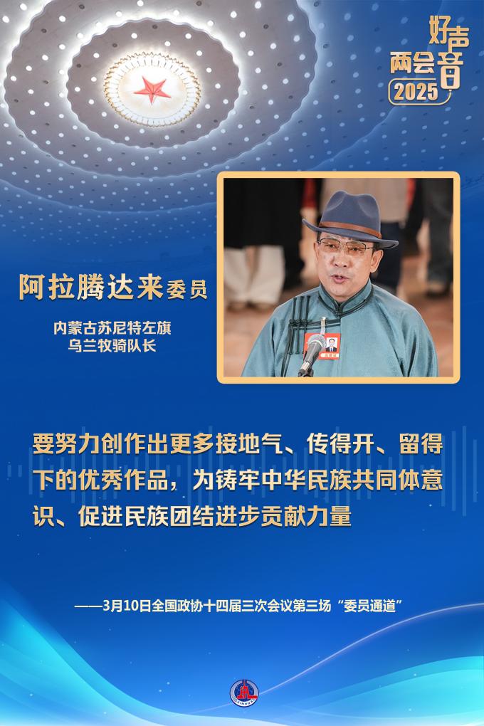 “在內(nèi)蒙古大地上,活躍著75支烏蘭牧騎隊(duì)伍,有3000多名隊(duì)員,每年開(kāi)展演出1萬(wàn)多場(chǎng)?!卑⒗v達(dá)來(lái)委員說(shuō),要努力創(chuàng)作出更多接地氣、傳得開(kāi)、留得下的優(yōu)秀作品,為鑄牢中華民族共同體意識(shí)、促進(jìn)民族團(tuán)結(jié)進(jìn)步貢獻(xiàn)力量。