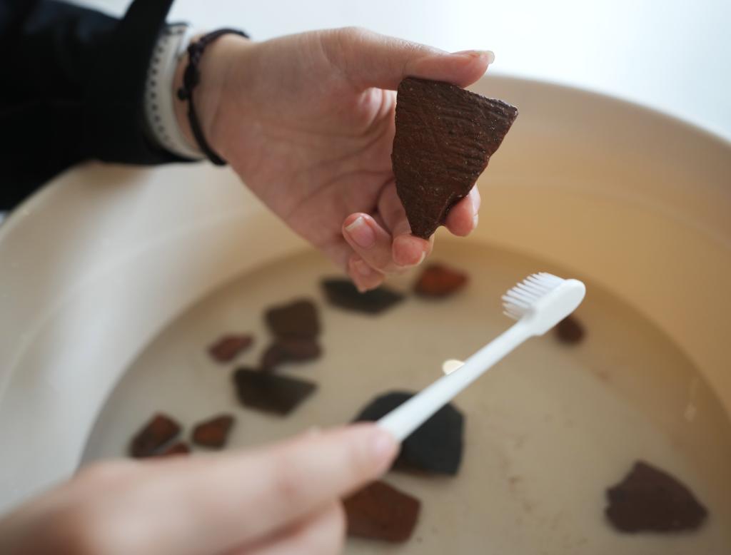 3月11日,在遼寧省朝陽(yáng)市北票市的考古人員住所,考古人員在清洗調(diào)查現(xiàn)場(chǎng)發(fā)現(xiàn)的碎陶片。當(dāng)日,來自遼寧省文物考古研究院的考古人員在遼寧省朝陽(yáng)市雙塔區(qū)調(diào)查紅山文化遺址。此前,考古人員在遼寧省朝陽(yáng)市凌源無白丁遺址群新發(fā)現(xiàn)多處紅山文化遺跡。新華社記者 李鋼 攝