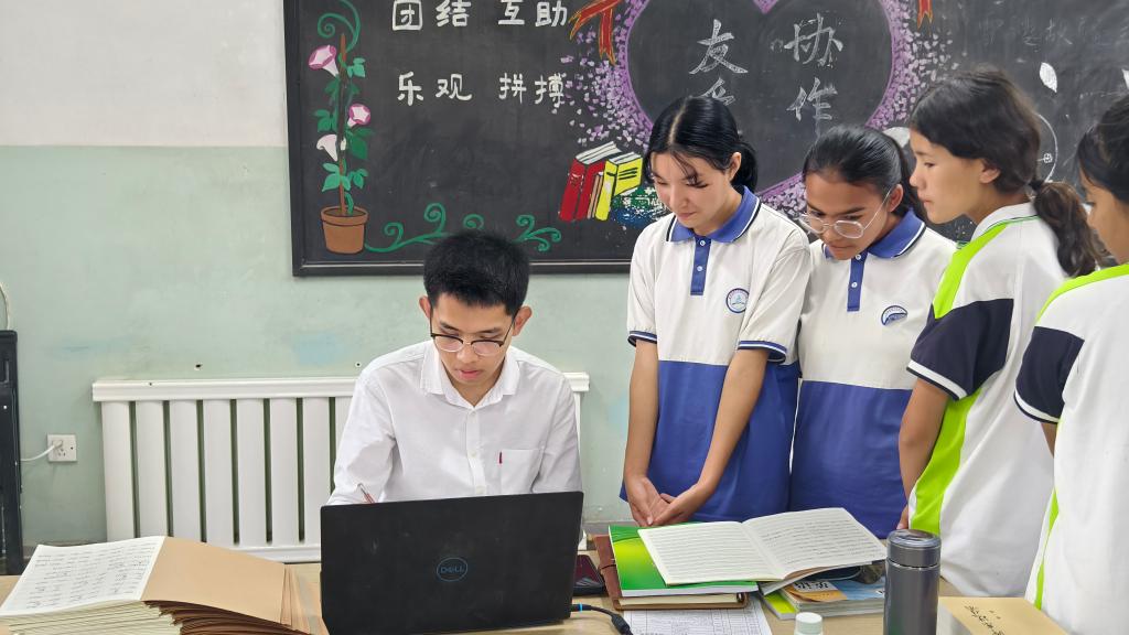 同樣來(lái)自山東的小伙兒蓋彥吉對(duì)支教事業(yè)抱有激情。2024年夏天,從中國(guó)農(nóng)業(yè)大學(xué)本科畢業(yè)后,他參加了學(xué)校的西部計(jì)劃研究生支教團(tuán),來(lái)到莎車縣第三中學(xué)任教。在教學(xué)工作中,蓋彥吉發(fā)現(xiàn),青年教師的天然親和力,能更好激發(fā)學(xué)生的求知欲。