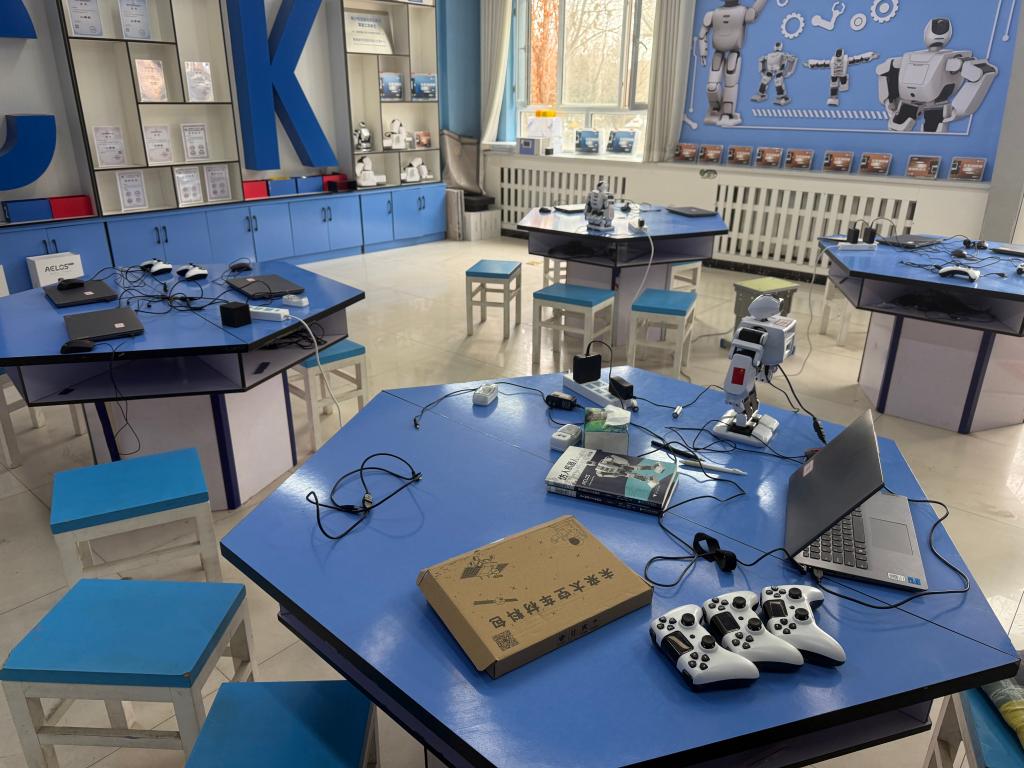 庫(kù)車市第三中學(xué)的人工智能機(jī)器人實(shí)驗(yàn)室。新華社記者 曹奕博 攝