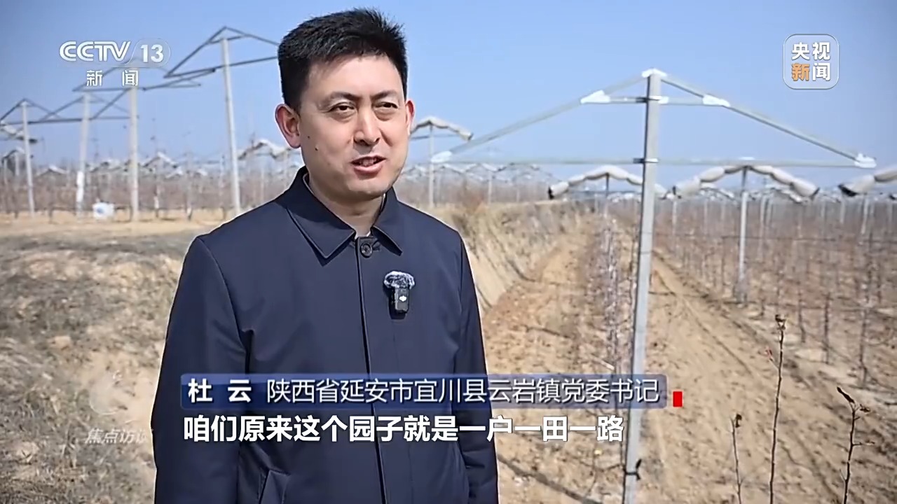 陜西省延安市宜川縣云巖鎮(zhèn)黨委書記 杜云:“原來(lái)這個(gè)園子是一戶一田一路,家家都要有生產(chǎn)路,原來(lái)有108塊,小田并大田以后并成了24塊,地界少了土地就多出來(lái)了,漲了95畝地。小田并大田以后以株代畝,土地不是按畝分,是按株分,一畝地能栽110株。如果你有一畝地就給你分110株,兩畝地分220株?!?/p>