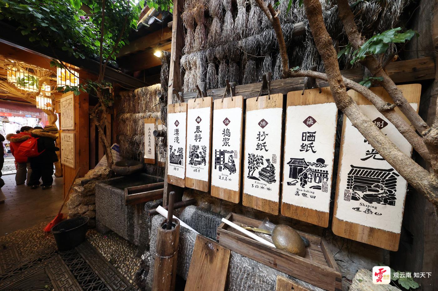 麗江古城內(nèi)以東巴文化體驗為亮點的“東巴紙坊”吸引著許多中外游客。在這里,游客們可以體驗到搗漿、抄紙、曬紙等東巴紙制作工藝,還能拿起東巴象形文字印章集章打卡。如果你好奇某個象形文字的含義,還能在這里買到一本東巴文“字典”,一一對照查看?!跋啾韧辏衲甓嗔瞬簧賮碜孕录悠?、馬來西亞的游客,東巴紙燈、明信片都是很受他們喜愛的產(chǎn)品?!睎|巴紙坊麗江銷售人員韓雨辰說。