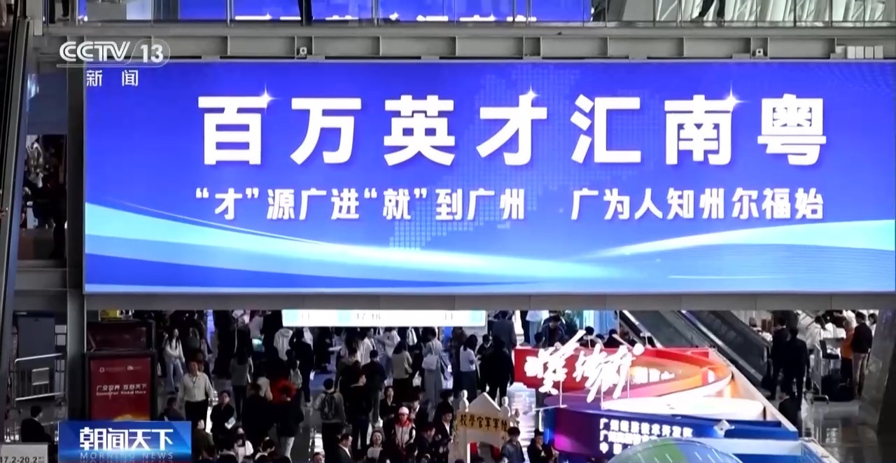 總臺央視記者 唐蕾:在廣州市琶洲廣交會展館,和往年比,今年春招規(guī)模擴大了近3倍,在這里,不僅有一站式的招聘會,還有人工智能與機器人專場項目對接會等多種人才對接活動。