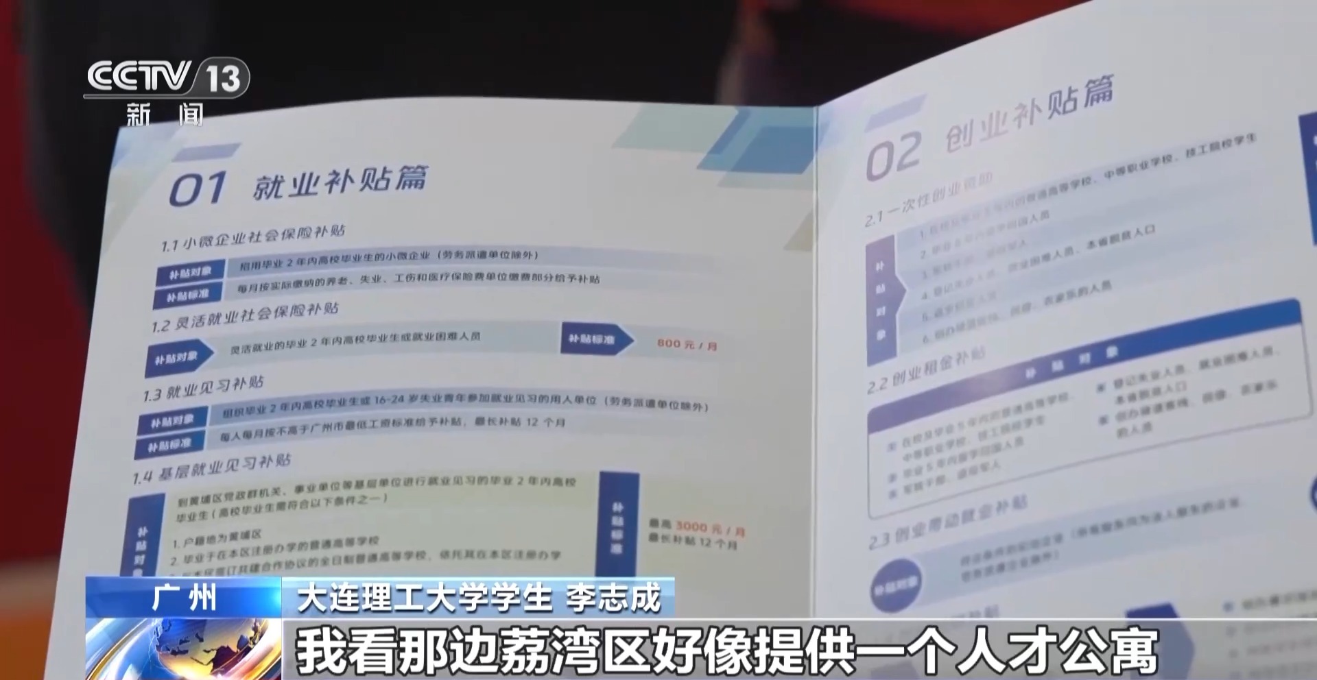 大連理工大學學生 李志成:我覺得廣州對于人才的吸引力是可以的,我看荔灣區(qū)好像提供一個人才公寓,為應屆生提供幾年的人才公寓,解決了住房的問題。
