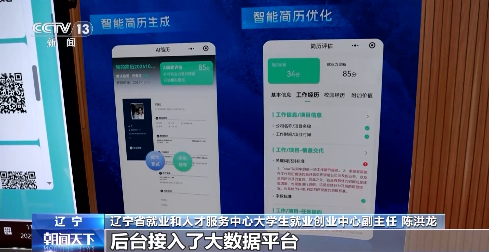 遼寧省就業(yè)和人才服務中心大學生就業(yè)創(chuàng)業(yè)中心副主任 陳洪龍:后臺接入了大數(shù)據(jù)平臺,這里面有我們的職業(yè)指導師和人力資源的指導數(shù)據(jù)大模型,優(yōu)化之后孩子們成功的概率會大大提升。