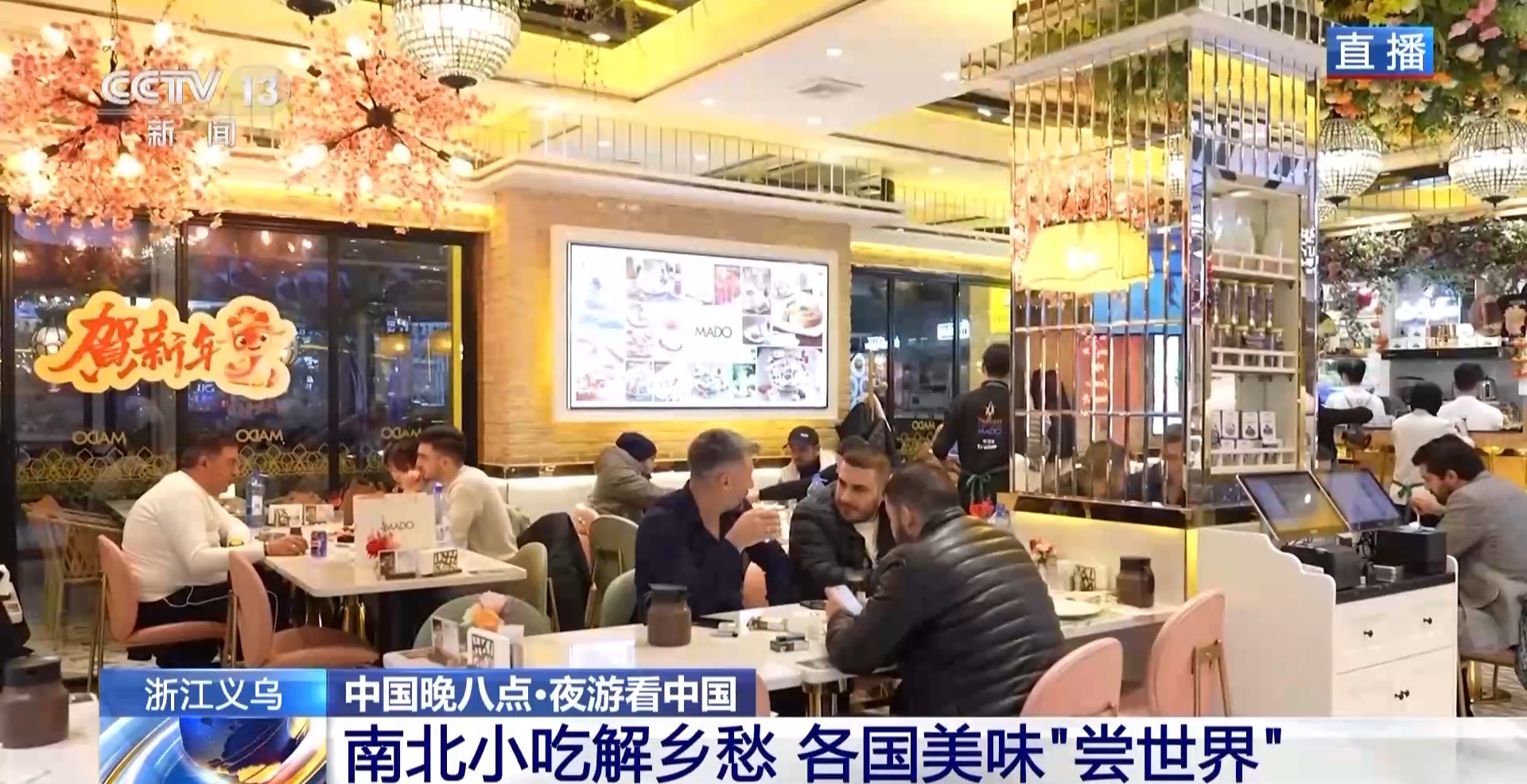 此外,馬路另一側(cè),還能品嘗世界美味,來自世界各地的大廚,直接把餐館開到了義烏,讓你無需搭乘飛機就能嘗到異國風味。在這里不僅能夠聽到天南海北的口音,還能看到不少外國游客也一起“逛吃逛吃”,在這一刻,美食或許就是“通用語言”。