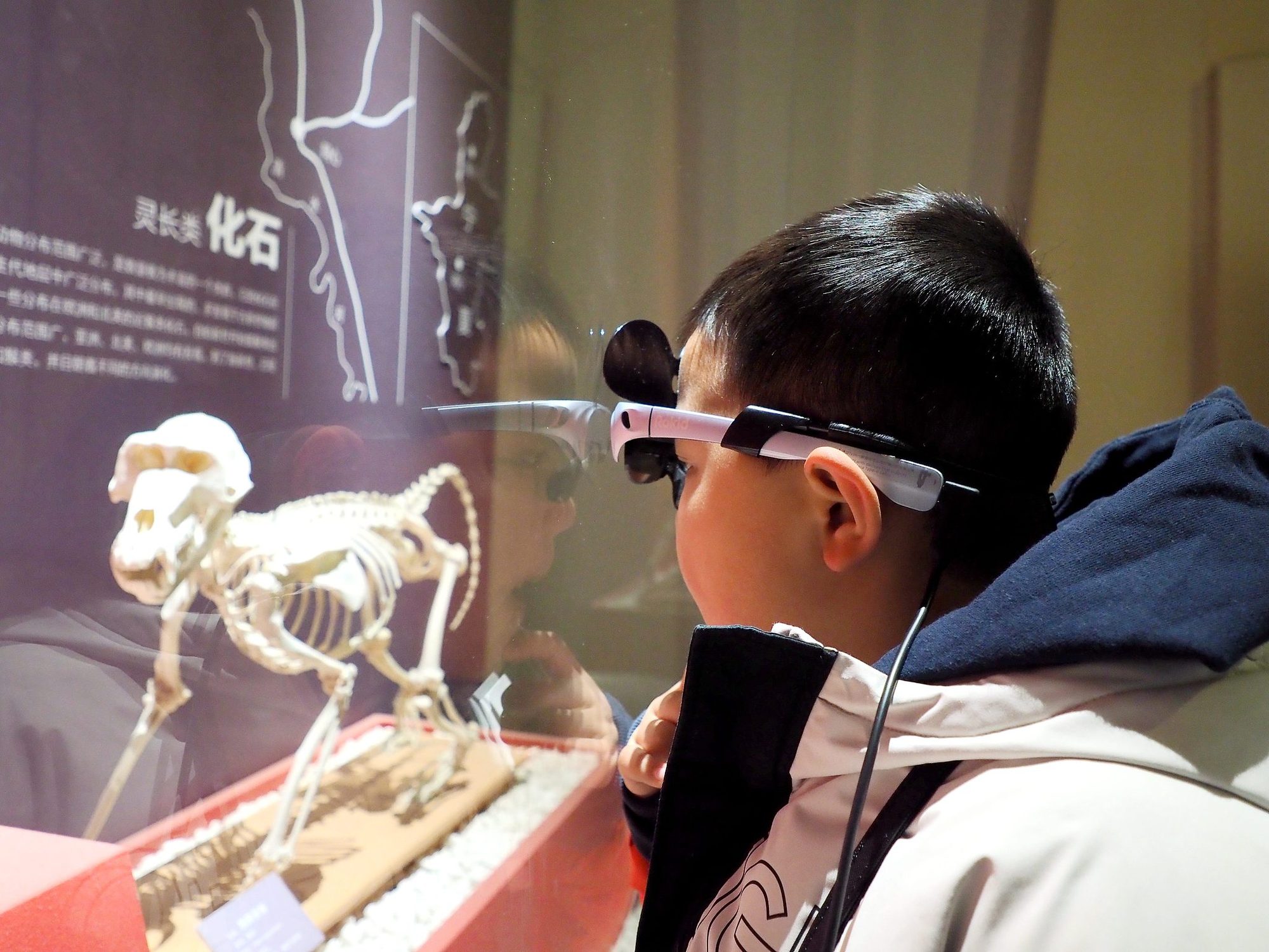 小朋友通過AR智能導(dǎo)覽眼鏡參觀展覽