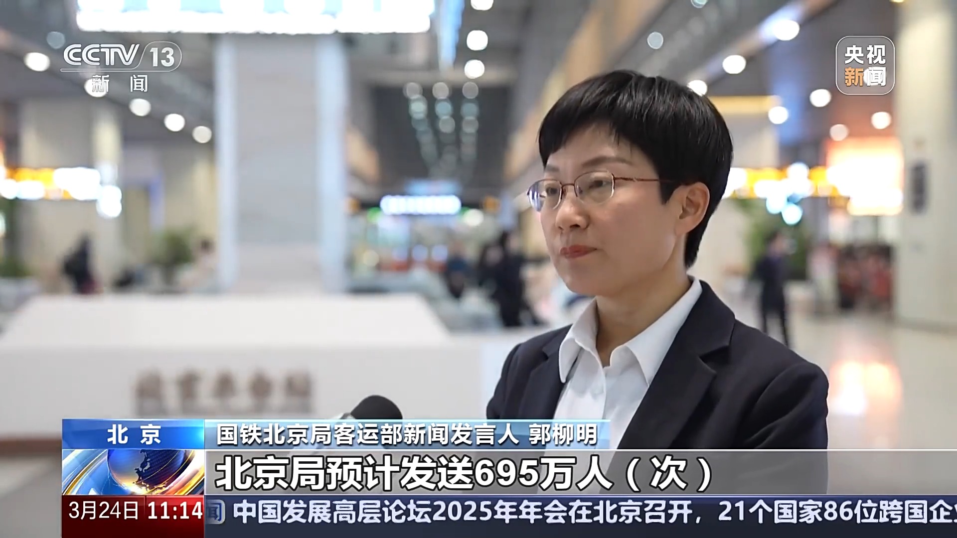 國鐵北京局客運部新聞發(fā)言人 郭柳明:清明運輸期間5天,北京局預計發(fā)送695萬人次,同比增幅4.6%。高峰日在4月4日,預計發(fā)送165萬人次??土髦饕性跐?、太原、鄭州、沈陽、青島、西安以及北京至天津、保定、石家莊、張家口往返間。