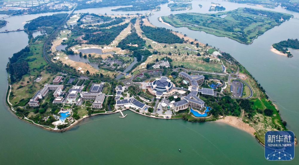 ↑ 博鰲零碳示范區(qū)所在地海南省瓊海市博鰲鎮(zhèn)東嶼島(3月19日攝,無人機(jī)照片)。