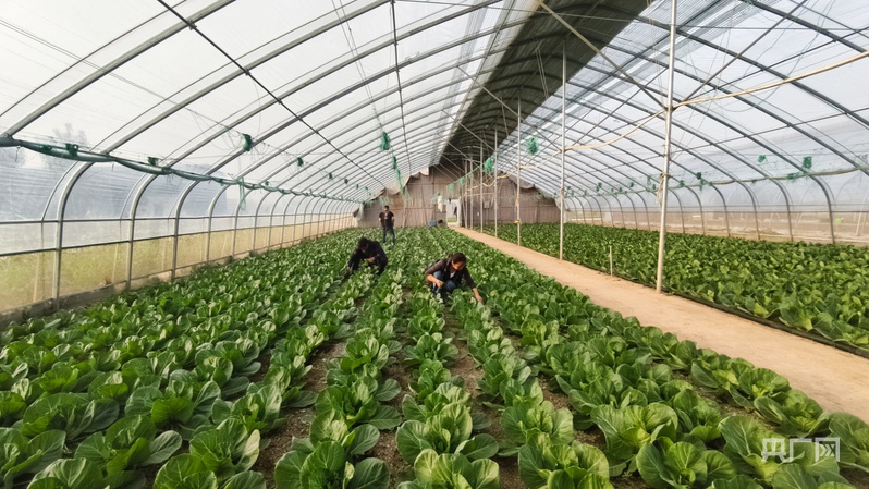 李王莊村蔬菜大棚里的甘藍(lán)長勢喜人(央廣網(wǎng)記者 郝振青 攝)