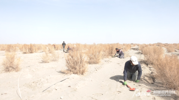 仲春時(shí)節(jié),地處南疆的阿克蘇,正是麥苗返青、杏花盛開(kāi)的時(shí)候。這幾天,在塔克拉瑪干沙漠邊緣阻擊戰(zhàn)北部前沿的沙雅縣、阿瓦提縣、新和縣等縣(市),廣大黨員干部及各族群眾正開(kāi)展大規(guī)模植樹(shù)造林。一排排新植的梭梭苗迎風(fēng)挺立,煥發(fā)出勃勃生機(jī)。