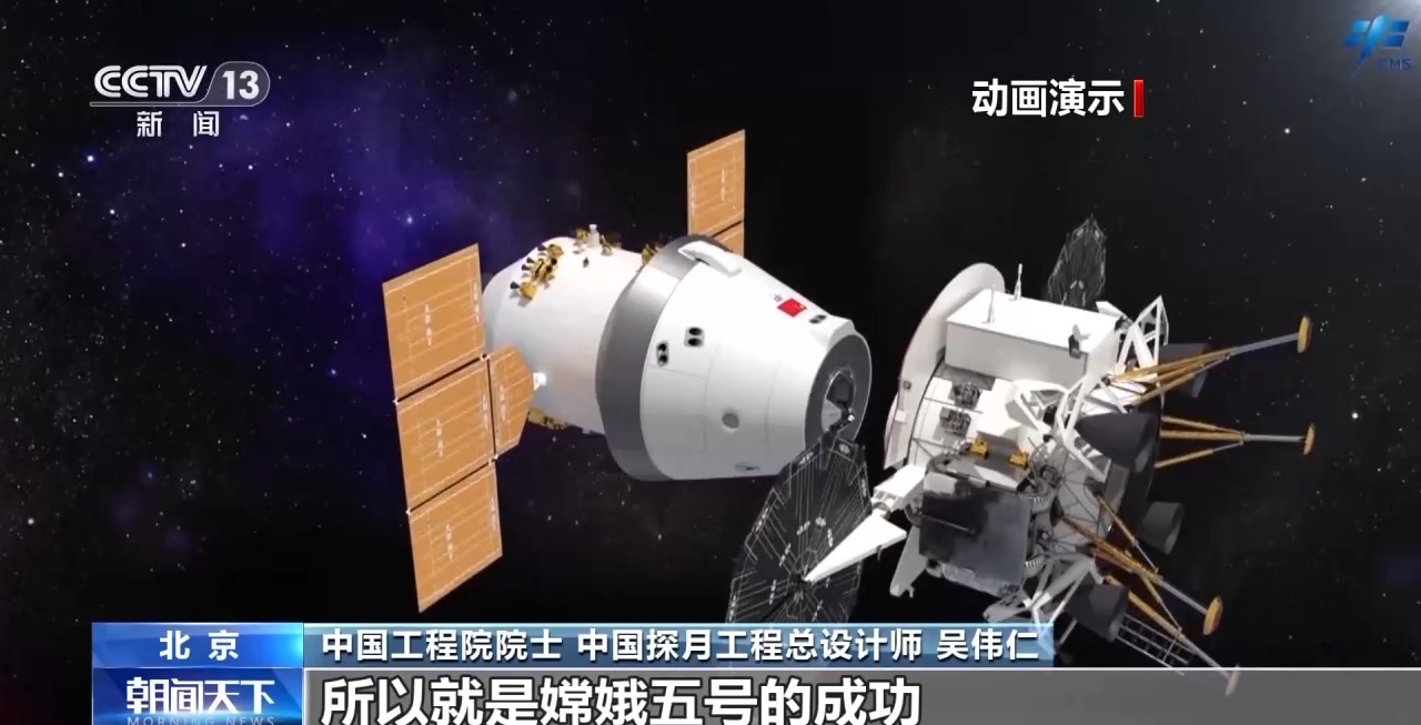 中國工程院院士 中國探月工程總設(shè)計(jì)師 吳偉仁:當(dāng)時就想利用嫦娥五號來驗(yàn)證我們后續(xù)載人登月技術(shù),載人登月就是在軌道上交會對接,然后人下去探測,探測完后月面起飛,在軌道上交會對接,然后人再進(jìn)入返回器,返回器再和軌道器脫離,脫離過后,返回器把人送回地球。所以嫦娥五號的成功,為未來我們載人登月奠定基礎(chǔ),幾乎把所有的關(guān)鍵技術(shù)都驗(yàn)證了一遍。