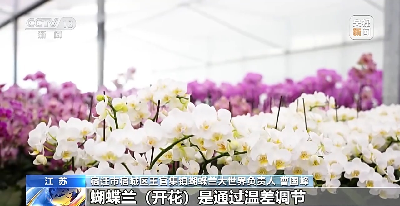 宿遷市宿城區(qū)王官集鎮(zhèn)蝴蝶蘭大世界負(fù)責(zé)人 曹國峰:其實(shí)蝴蝶蘭的自然花期應(yīng)該是農(nóng)歷年開始一直到“五一”,這是自然狀態(tài)?,F(xiàn)在我們通過技術(shù)干預(yù),想哪一天開就哪一天開。蝴蝶蘭開花是通過溫差調(diào)節(jié),這個時候我們就要用空調(diào),一些恒溫設(shè)備以及除濕設(shè)備進(jìn)行恒溫控制。